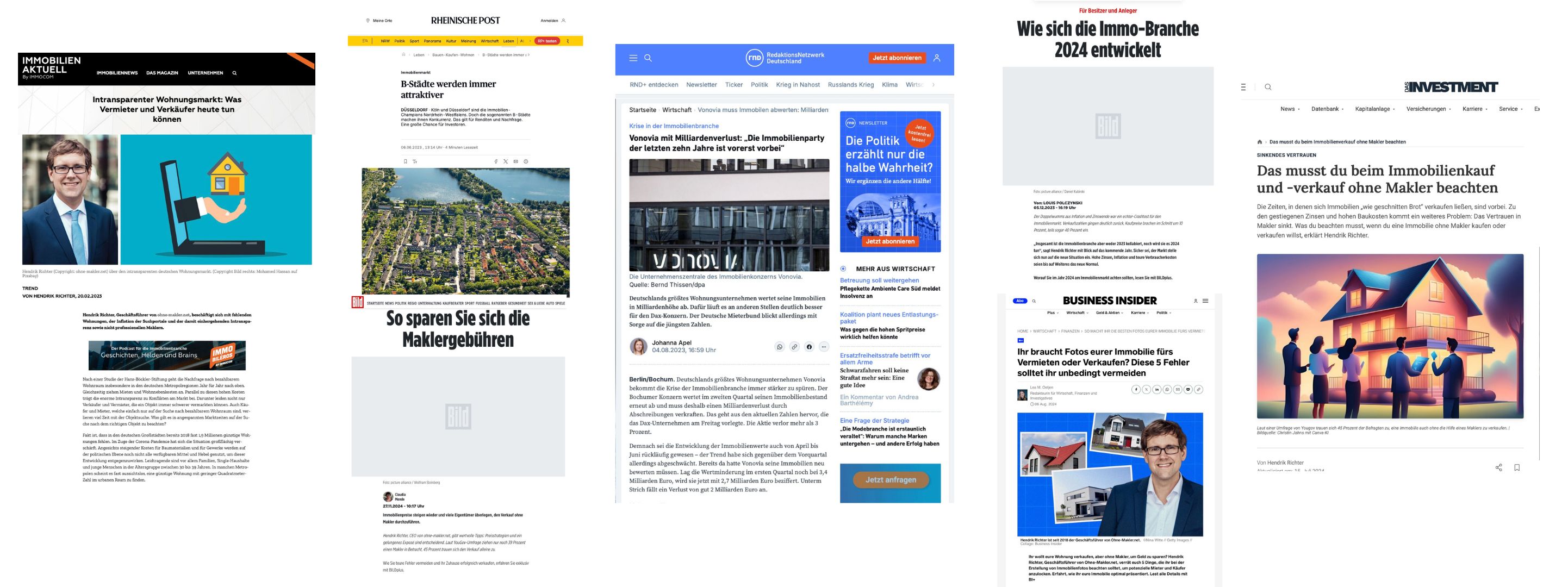 Diese Strategie zahlte sich schrittweise aus: Durch die kontinuierliche Präsenz in spezialisierten Medienhäusern bauten wir eine mediale Referenzkette auf, die das Standing von ohne-makler Schritt für Schritt festigte. Diese neu gewonnene Sichtbarkeit diente als Türöffner für eine breit gefächerte Palette an Opportunitäten zur Positionierung