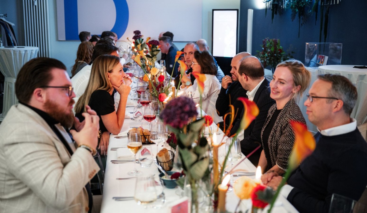 Von Anfang an stand das Dinner im Zeichen persönlicher Begegnungen. Ein Champagner-Empfang, ein feines Vier-Gänge-Menü und Cocktails an der Bar schufen den Rahmen.